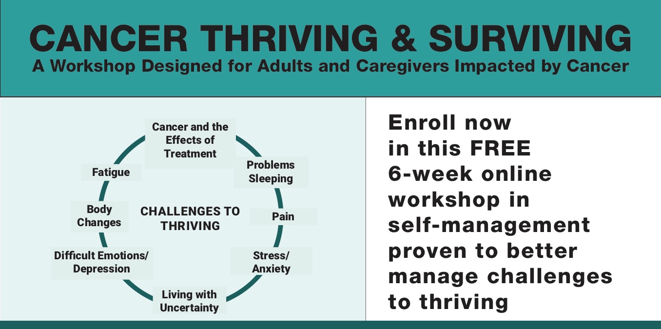 Developed by Stanford University, this licensed program in self-management is proven to help those impacted by cancer to better manage the challenges to thriving. Whether you are newly diagnosed, in treatment or post treatment, this program is for you. The curriculum covers issues experienced by many such as managing fatigue: pain and sleep; dealing