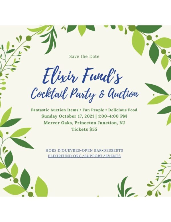 SAVE THE DATES FOR OUR UPCOMING EVENTS March 2021- Elixir Fund's 18th Anniversary Spring - Virtual Race October 17, 2021 - East Coast Auction & Cocktail Party