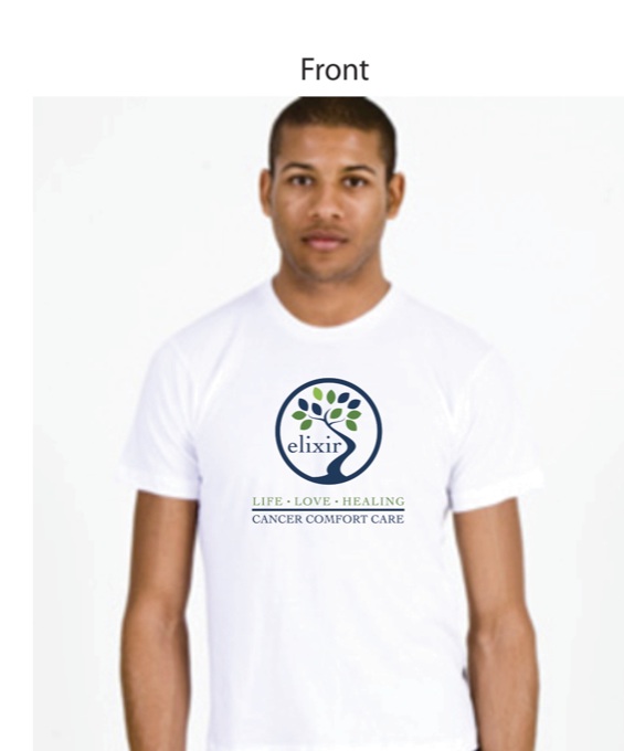 We have designed a special t-shirt for this event that Meg will wear during the race. On the front is the Elixir Fund logo and on the back listed are the names of some of the people -patients, caregivers, doctors, nurses, social workers- that have inspired Meg over the years